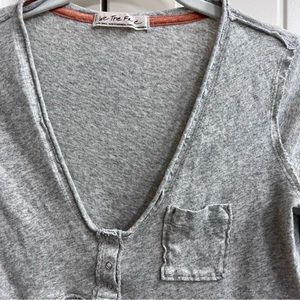 We The Free Womens Cotton Crop Top V-Neck Peplum in Gray/Peach, Size XS
