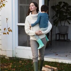 NWT Doen Gillian Fisherman Cable Knit Wool Cotton Roll Turtleneck Sweater Ivory