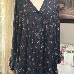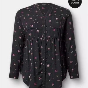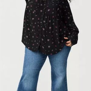 Torrid Black Floral Button Down Shirt