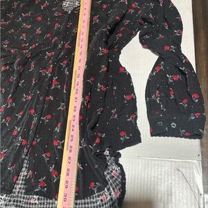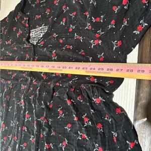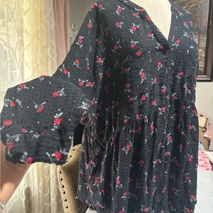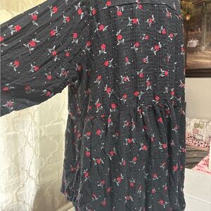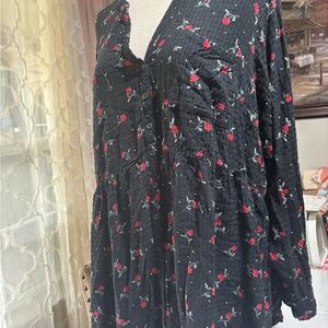 Chic black button down with floral print. Long sleeves. Perfect for casual wear.