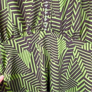 Anna Kay An’ge Orfyrie Dress Long Sleeves Green Tropical Print Lightweight Small