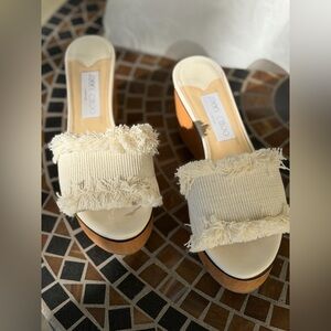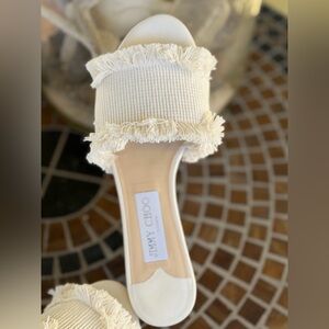 • Features: Fringed/tassel edges on the cotton strap and a prominent Jimmy Choo London logo on the footbed.