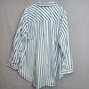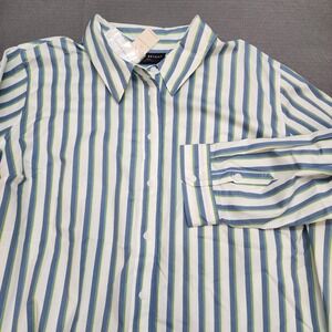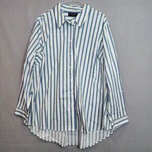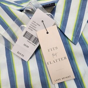 Lane Bryant Button Down Shirt Blue Green Striped Long Sleeve Plus Size 22/24 NEW