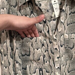 Express Portofino Top Women's Semi-Sheer Long Roll Tab Snakeskin Print XS