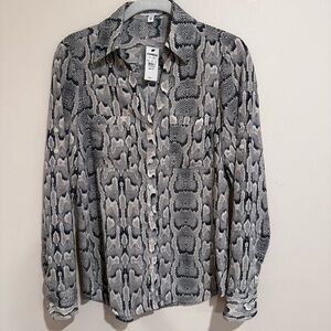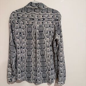 Express Portofino Blouse Women's Semi-Sheer Long Roll Tab Snakeskin Print XS