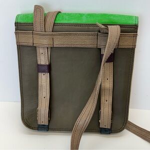 Beautiful Soruka backpack (which changes to a crossbody bag) featuring a playful mix of green, orange, pink, and purple. As with all Soruka bags, always with recycled leather scraps made into new products! NWOT