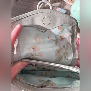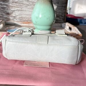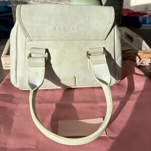 Elegant cream satchel by RADLEY LONDON. Features a top handle and signature dog charm. Perfect for any occasion.