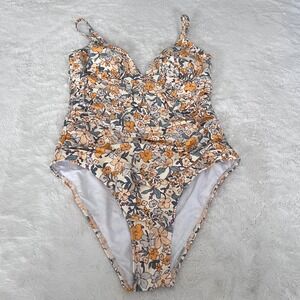 Cupshe Women's Blue Ribbed Henley One Piece Swimsuit Long Torso Medium Tall NWT
