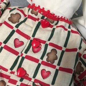 Girl bunny gingerbread print dress with heart buttons
