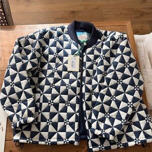 Chic quilted puffer jacket with navy and white pattern. NWT by The Great. Oversized so fits more like a L