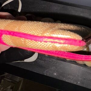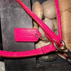 You get 3 Coach Wristlets. Black one is all leather used just a few times in like EUC dimensions 8”x4”.5. Pink is all leather in good condition some marks inside dimensions are 6”x4”. White wristlet is in good condition dimensions are 6”x4”