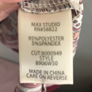 Max Studio Three Quarter Sleeve Printed Midi Dress Burgundy and White size XS