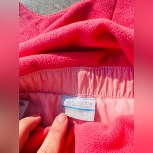 Vibrant pink overalls by Columbia. Perfect for active play. Easy to wear and stylish.