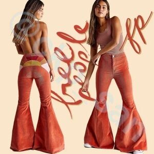 Stylish patchwork design. Flare cut for a retro vibe. Perfect for a bold look. Bring in the sunshine no matter the season with these essential flare jeans featured in a high-rise silhouette and stunning corduroy fabrication with color blocked graphic at back for added dimension.