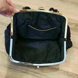 Vintage 1950's Corde Black & Gold Tone Beaded Purse by Lumured (O5.12.8)