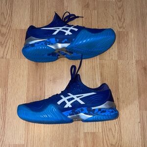 Men’s Asics Court Flytefoam Novak Blue Print Camo Court Sneakers Size 9