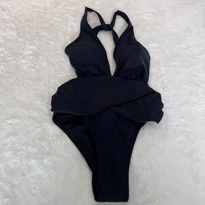 Cupshe Black Wrap Waist High Cut One Piece Swimsuit CASL1305BB Size Medium NWT