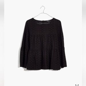 Madewell Black Eyelet Size XS Tiered Long Sleeve Top Blouse Shirt Back Buttons. Bell sleeves, loose fit, 100% cotton. Width pit-to-pit 17 inches, length 20 inches. Retailed for $92