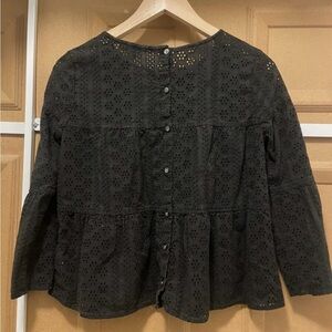 Madewell Black Eyelet Size XS Tiered Long Sleeve Top Blouse Shirt Back Buttons