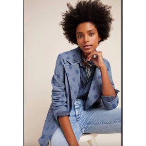 Eva Franco Anthropologie Priscilla Denim Polka Dot Blazer Blue Oversized Size S