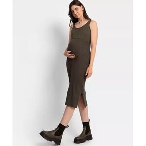 Practical and comfy, this lovely Nursing and Maternity Long Sleeve Knitted Dress by Seraphine will become your go-to piece to feel gorgeous yet comfortable through your pregnancy and beyond! A real must-have, it is made in the softest ribbed knit with plenty of stretch, to hug your figure for a bump-flattering fit throughout the nine months of pregnancy. Then after baby is born, the removable top lifts up to offer quick & convenient nursing access. The midi length with side splits add comfort to this easy-to-match dress. Perfect for everyday style.