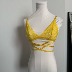 Yellow Lace Bralette bondage strappy pastel XS