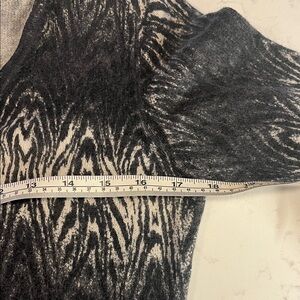 Elegant cashmere sweater. Soft and luxurious feel. Ideal for any occasion with plenty of stretch. No pilling, great go-to staple with classic animal print; not sure what animal though! 😂