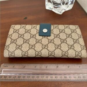 This gently used Gucci wallet is in excellent condition with no exposed piping, rubbing, or major wear. The classic design and high-end craftsmanship make it a timeless addition to any collection.