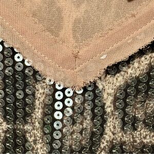 ENTRO Fully Sequined Animal Leopard Print Raw Edge Sleeveless Tank Blouse