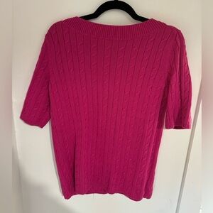Vibrant pink cable knit sweater. Short sleeves. Soft and stylish.