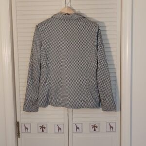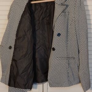 Stylish blazer with a classic black and white pattern. Double-breasted design adds elegance. Perfect for versatile styling.