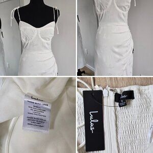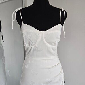 Lulus Wishing on Love White Satin Jacquard Midi Dress Small New With Tags $69