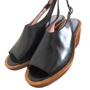 Handmade. Part of the Havana Collection. Real wood soles. Sling back with adjustable strap. Super chic and unique! Slightly too big for me, so letting them go.