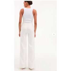 The perfect relaxed pant. Made in the US from premium stretch linen, the Cole in white is designed for ease with a wide waistband, front pleats and a draped, wide-leg silhouette. Pair with the matching Dale dickey for an effortless power suit.