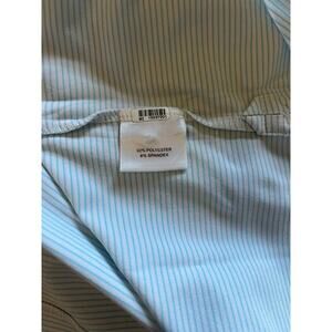 -Description: Peter Millar Summer Comfort polo shirt. Baby Blue & White stripe. Size XXL. 3 button. 92% Polyester/ 8% Spandex. Extra button included. Excellent condition!
