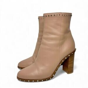 Valentino Garavani Bootie 38.5 US 8.5 Rockstud Trim Nude Beige Ankle Boots