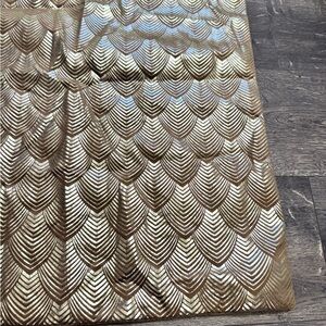 Gold Embossed Pillow Cover NEW. Measures 18" X 18". Front features an embossed pattern and the back is a solid velvet. Features a 14" zipper for entry. This is brand new, never used.