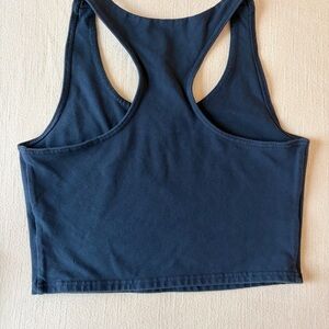 Stylish navy athletic tank and leggings set. Perfect for workouts.