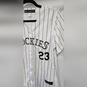 Nike Jersey men M Kris Bryant Colorado Rockies jersey white striped MLB Limited