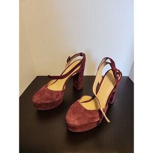 Veronica Beard Women Magda Platform Ankle Strap Pump Size 8.5 M Red Merlot Suede