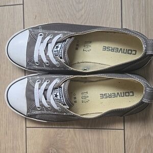 Step out in style with these Converse women's sneakers. Featuring a classic brown color, these shoes offer both comfort and fashion. Perfect for everyday wear. slip on canvas upper rubber sole excellent condition