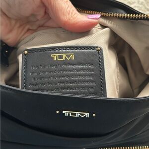 Tumi Voyageur Capri Crossbody Shoulder Bag Black Nylon with Leather Trim.
