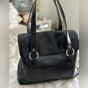 • Nylon with leather trim.