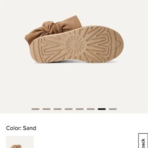 Stylish tan boots with a large bow. Cozy and perfect for winter.