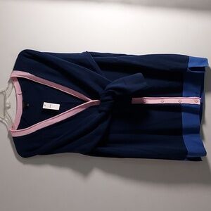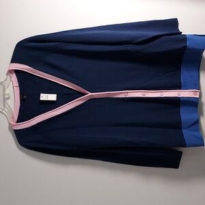 Talbots button down Sweater long sleeves size Large pit to pit 22" Length Shoulder to Hem 30" Blue,pink, purple, at Bottom NWT