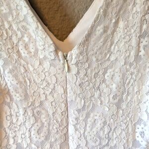 Lovely white lace dress with a flattering V-neckline. Perfect for any occasion.