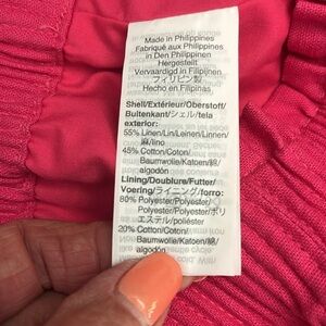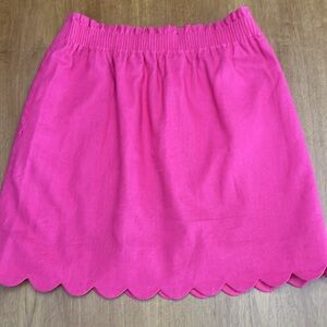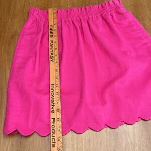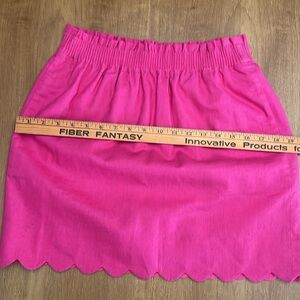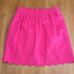 J Crew Pink Scalloped Hem Linen Mini Skirt, Elastic Waist, Side Pockets, Size 2