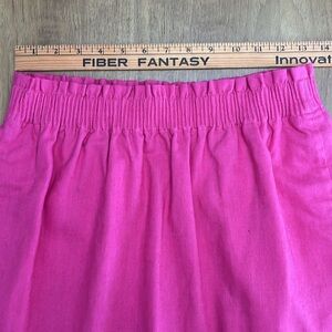 Pink Scalloped Hem Linen Mini Skirt, Elastic Pull on Waist, Side Pockets, Size 2