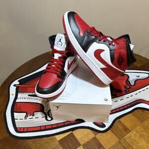 Step out in iconic style with these fantastic Jordan Air Jordan 1 Mid 'Alternate Bred Toe' sneakers! These beloved kicks feature the classic black and red colorway that's sure to turn heads. They are perfect for adding a touch of sporty elegance to any outfit, whether you're hitting the streets or just enjoying a casual day out.