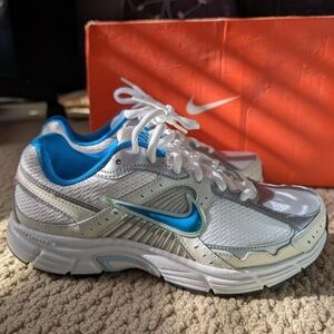 Step out in style with these vibrant Nike women's sneakers. Featuring a mix of purple, blue, and white, these shoes offer both comfort and flair. Perfect for any casual outing.